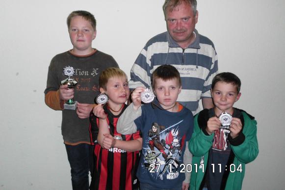 Bei den Jüngsten hat Marvin Schäfer gewonnen. Das Bild zeigt den 1. Vorsitzenden Thomas Graulich (h.r.), Marvin Schäfer (h.l.), Luke Pagels (v.l.), Dominik Volk (v.m.) und Marlon Schäfer (v.r.).
