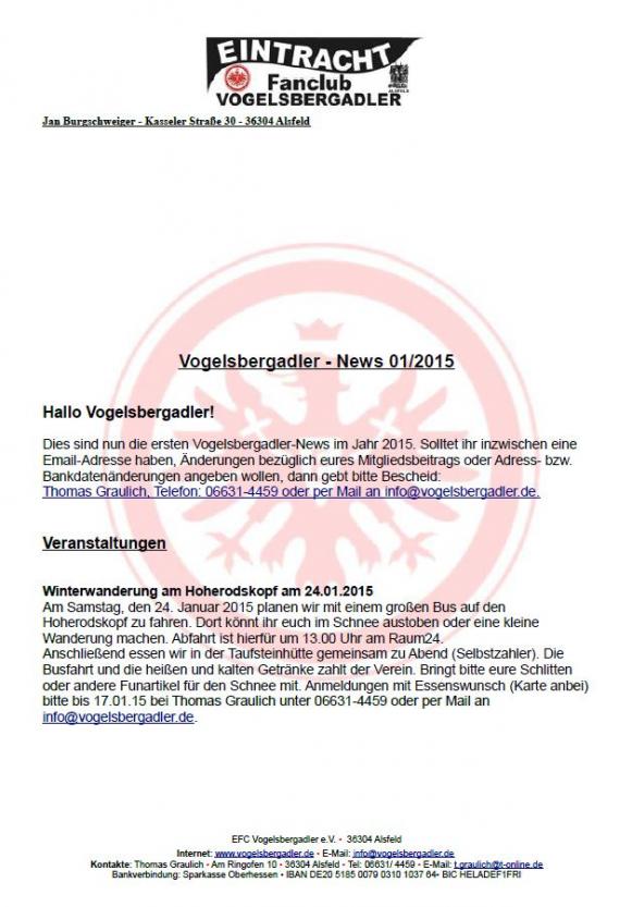 Vogelsbergadler-News 01/2015