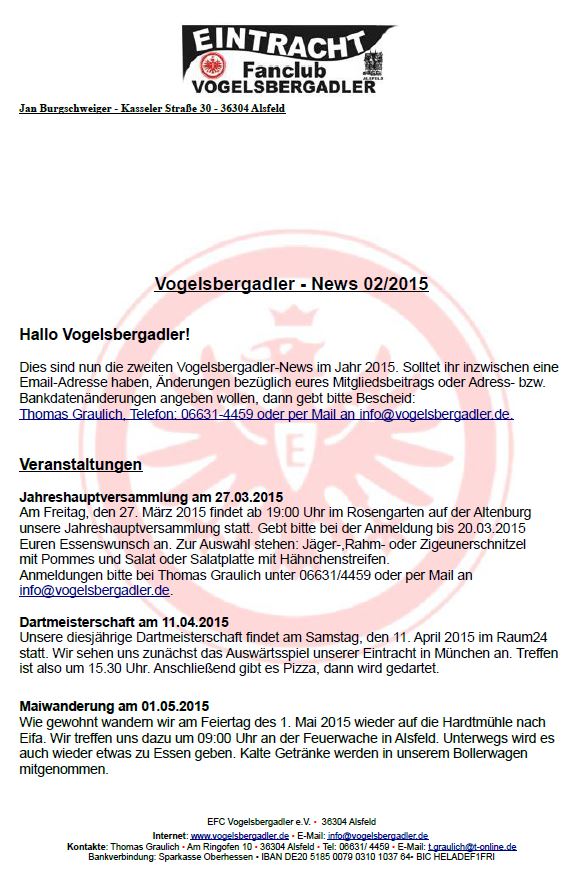 Vogelsbergadler-News 02/2015