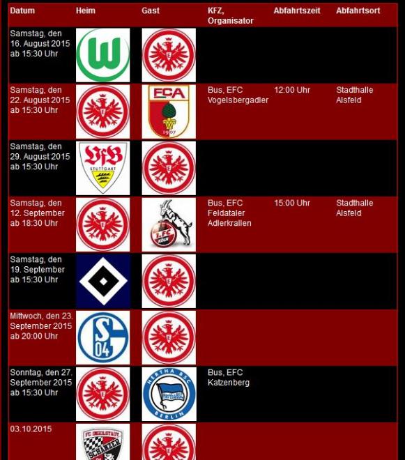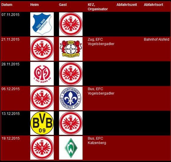 Auf unserer Unterseite findet ihr nun die Auflistung der anstehenden Fahrten in der Hinrunde zur neuen Bundesliga Saison 2015/2016.